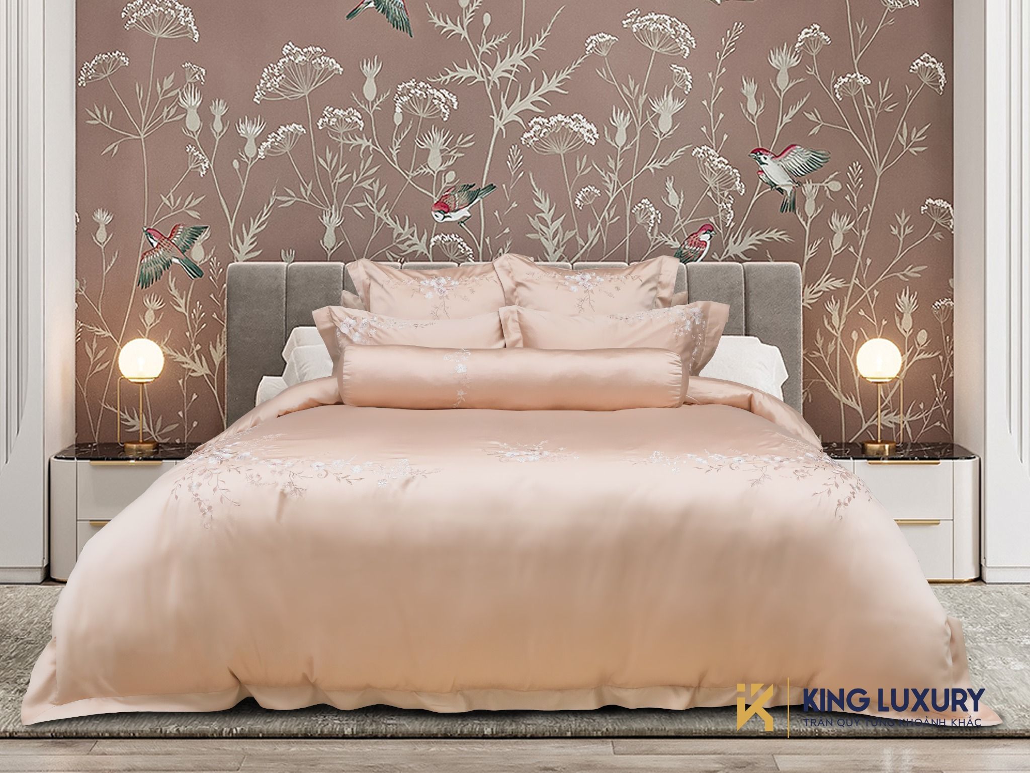 Vẻ đẹp của nữ diễn viên Doris Day được ví như những bông hoa mẫu đơn bởi sự quyến rũ, kiêu sa của mình. Đây cũng chính là nguồn cảm hứng cho nhà thiết kế của Nature Home tạo ra tuyệt phẩm chăn ga với những chùm hoa mẫu đơn duyên dáng nhưng không kém phần mạnh mẽ được thể hiện sinh động trên nền vải cao cấp bóng mịn.