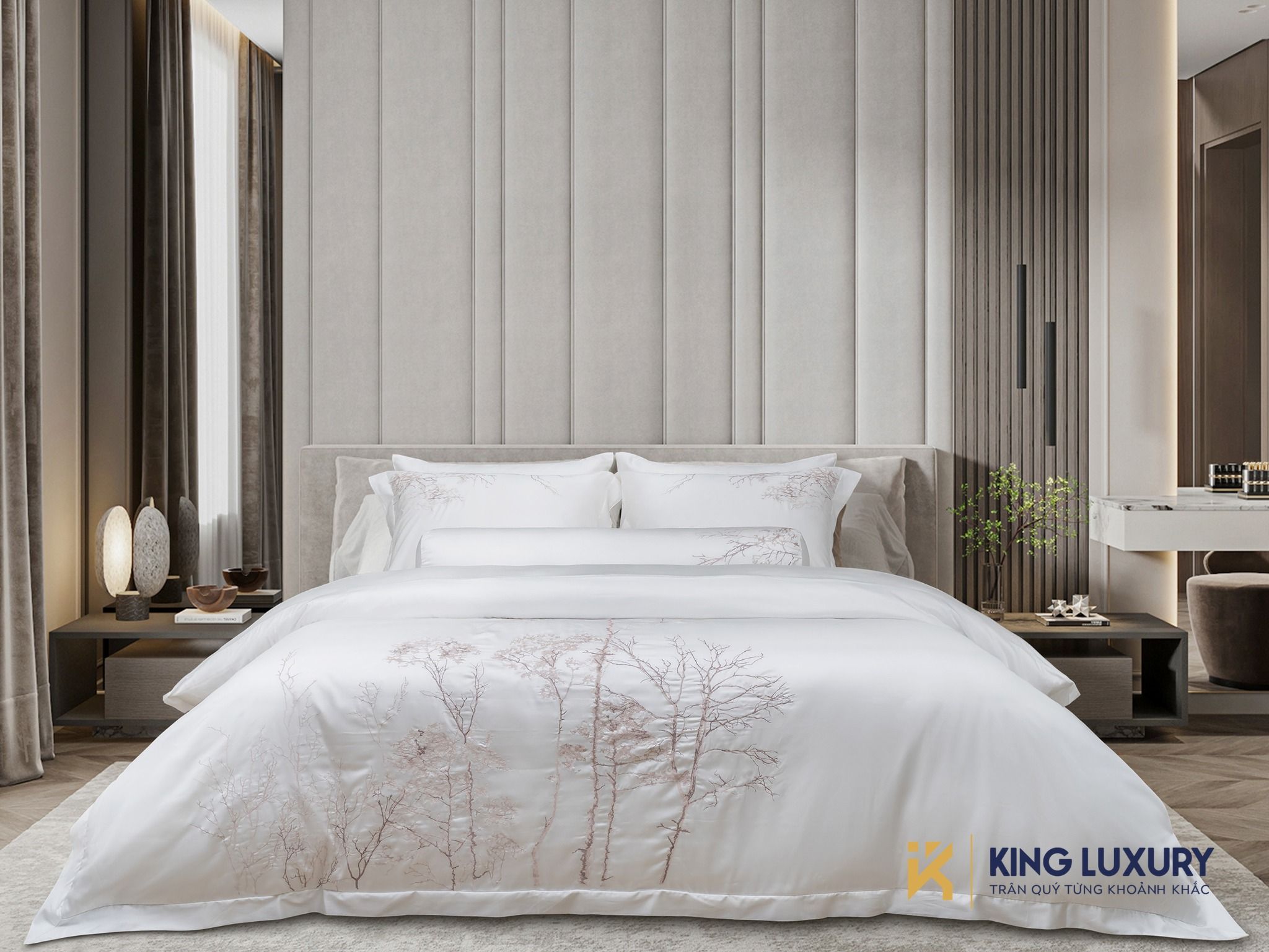 Larose là một rừng cây thơ mộng nằm ở phía Đông, Canada. Vẻ đẹp hoang sơ nhưng đầy lãng mạn của Larose đã truyền cảm hứng cho nhà thiết kế Nature Home hoạ lên bức tranh về một khu rừng với những tán cây cao được thêu tỉ mỉ, mềm mại cùng những cánh chim bay lượn xung quanh tạo nên cảnh quan hòa bình, sống động. Đắm chìm trong khung cảnh tuyệt đẹp cùng chất liệu tuyệt hảo, Larose mang đến cảm giác thư thái, hứng khởi.